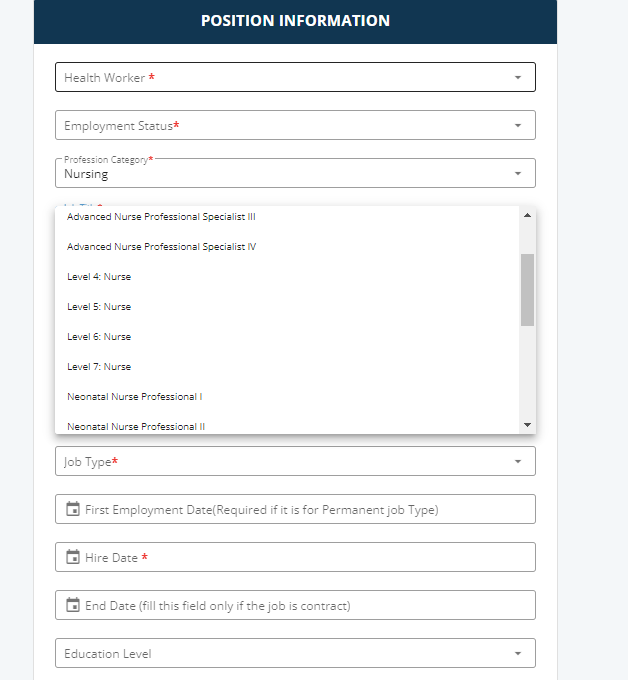 I am writing to report an issue with the iHRIS system concerning job titles under the nursing profession category. It has come to my attention that the following job titles are currently not listed:
